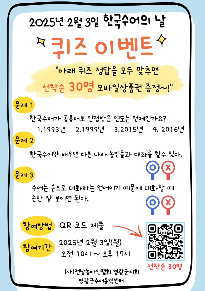 2025년 2월 3일 한국수어의날 퀴즈이벤트